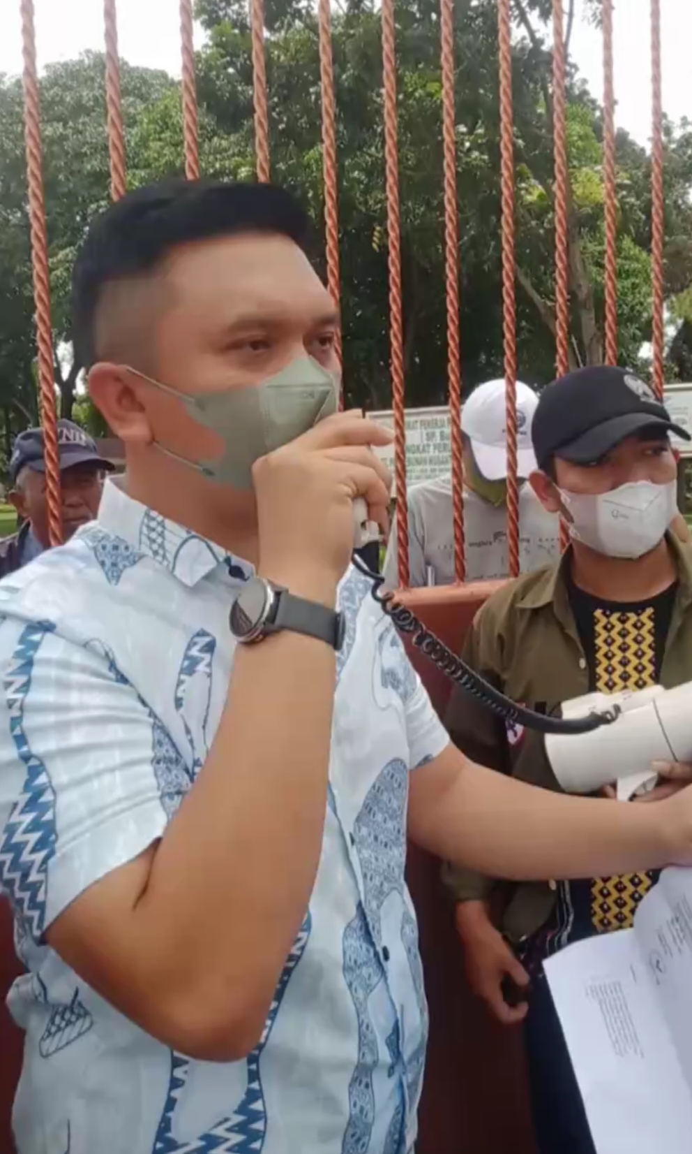 Riky Pratama selaku ketua orasi menyampaikan dugaan korupsi pengadaan didua perusahaaan bersumber dana yakni PT. Sarana Agro Nusantara yang dilaksanakan oleh PT.Ginsak Enggring pada pekerjaan pengadaan dan pemasangan 1 unit boiler berbahan bakar cangkang kapasitas 6000 kg/h combination, dengan No.SAN/DIR/SP/15/V/2019 dengan anggaran sebesar Rp.7.667.812.000 milliar.