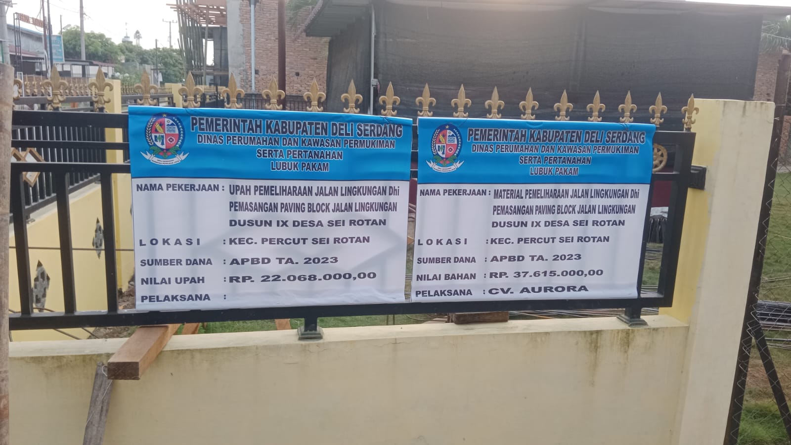 Pekerjaan itu mengundang kecurigaan masyarakat pemakai jalan di Gang Bardi Kecamatan Percut Sei Rotan Kabupaten Deli Serdang, dikarenakan plang atau pengumuman pekerjaan itu, tidak menggunakan atau tak dicantumkan – tanggal dimulainya pekerjaan, kecurigaan masyarakat dikarenakan dugaan dana yang tumpang tindih, disebabkan plang yang didirikan sumber dana selain dari dana Rp.22.068.000. dan ada lagi sumber dana Rp. 37.615.000.- untuk nilai bahan yang Pelaksana dari CV AURORA.