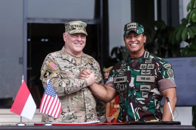 Mediakebenarankeadilan.com – Jakarta, Tentara Nasional Indonesia (TNI) menjalin kerja sama militer dengan Amerika Serikat yang ditandai dengan kunjungan Chairman of The Joint Chiefs of Staff (CJCS) General Mark AA Milley di Mabes TNI, Jakarta, Minggu.